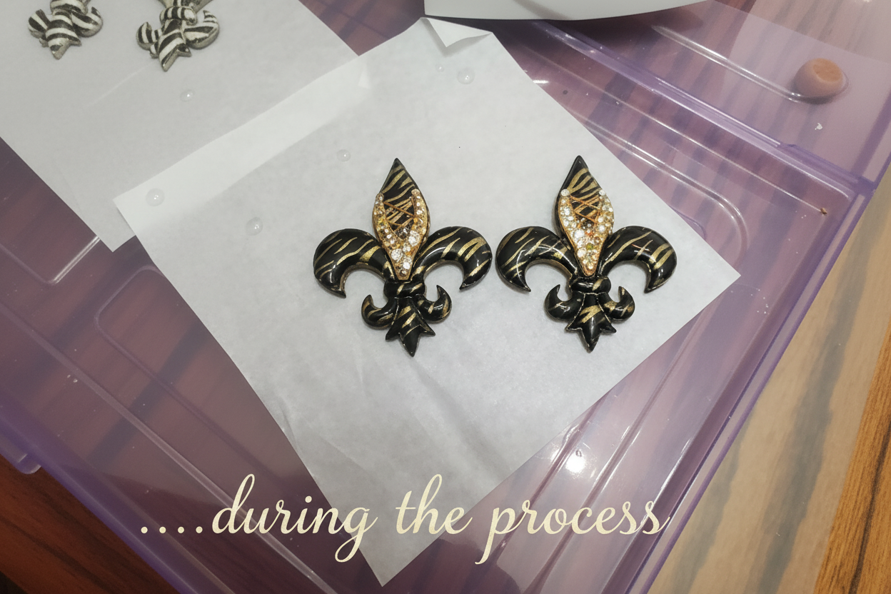 Bring the magic of the French Quarter wherever you go. Whether you're catching beads on St. Charles Avenue or looking for that perfect statement piece for a night out, our Midnight Gold Fleur-de-lis Earrings offer the perfect blend of NOLA heritage and modern elegance. Handmade of polymer clay and finished with a glass-like shine, these earrings are designed to be as bold and resilient as the city itself.